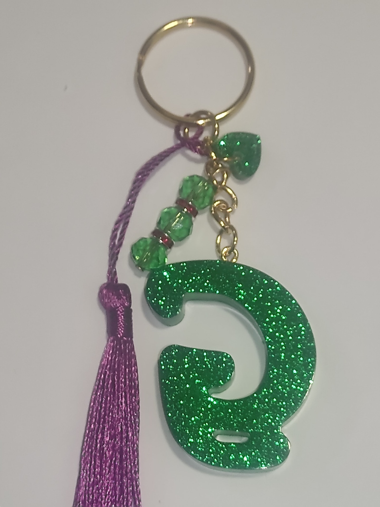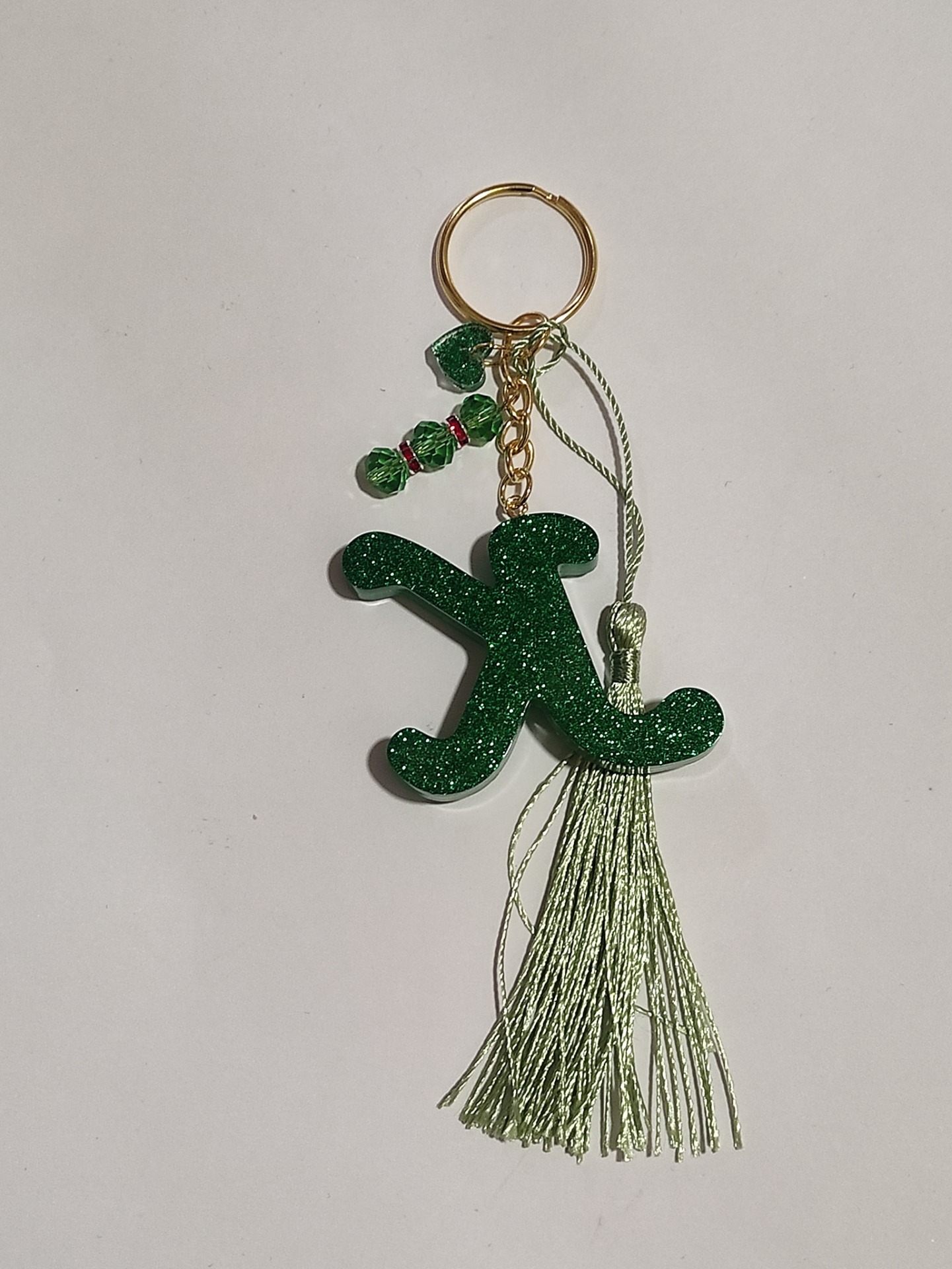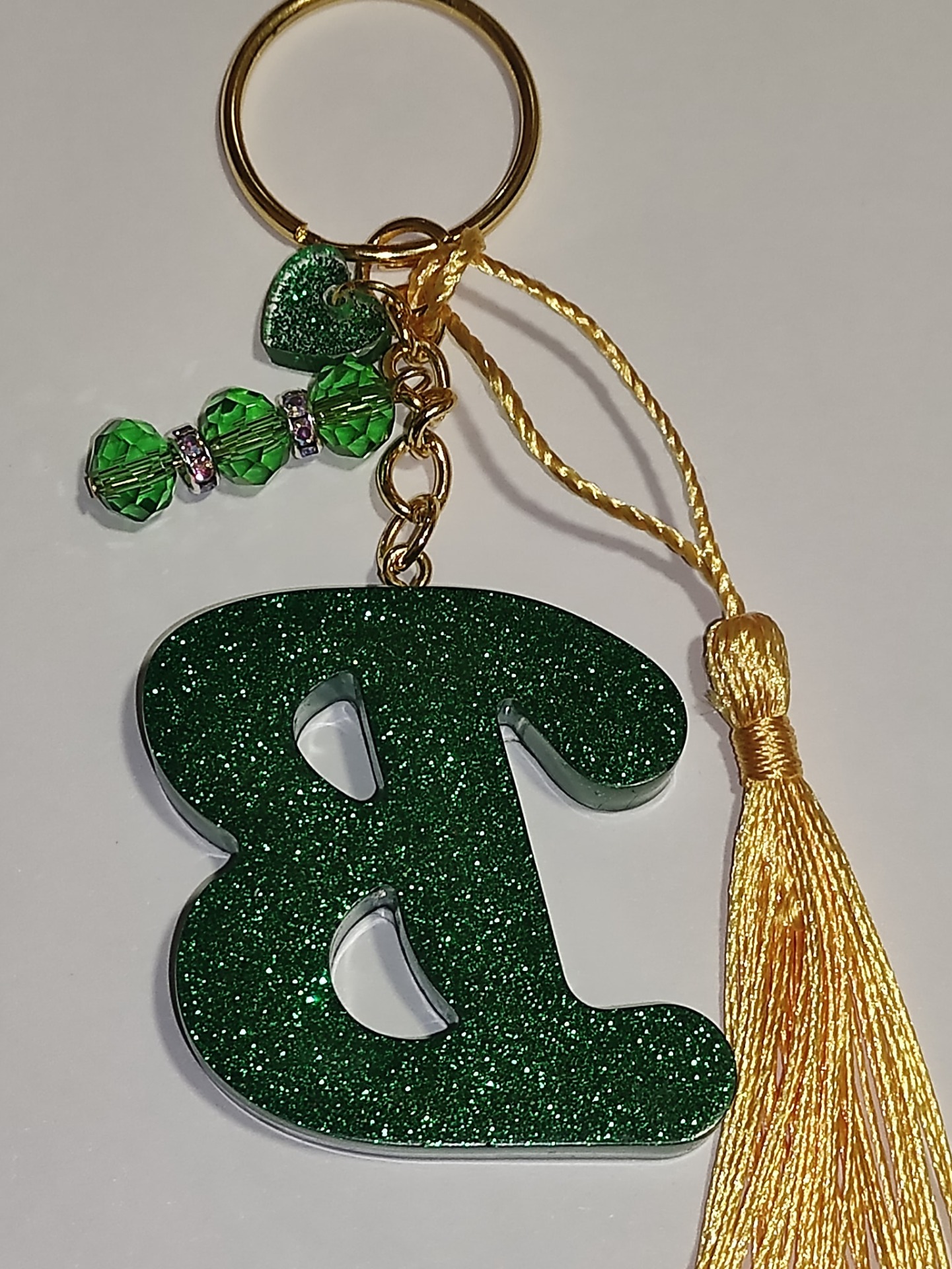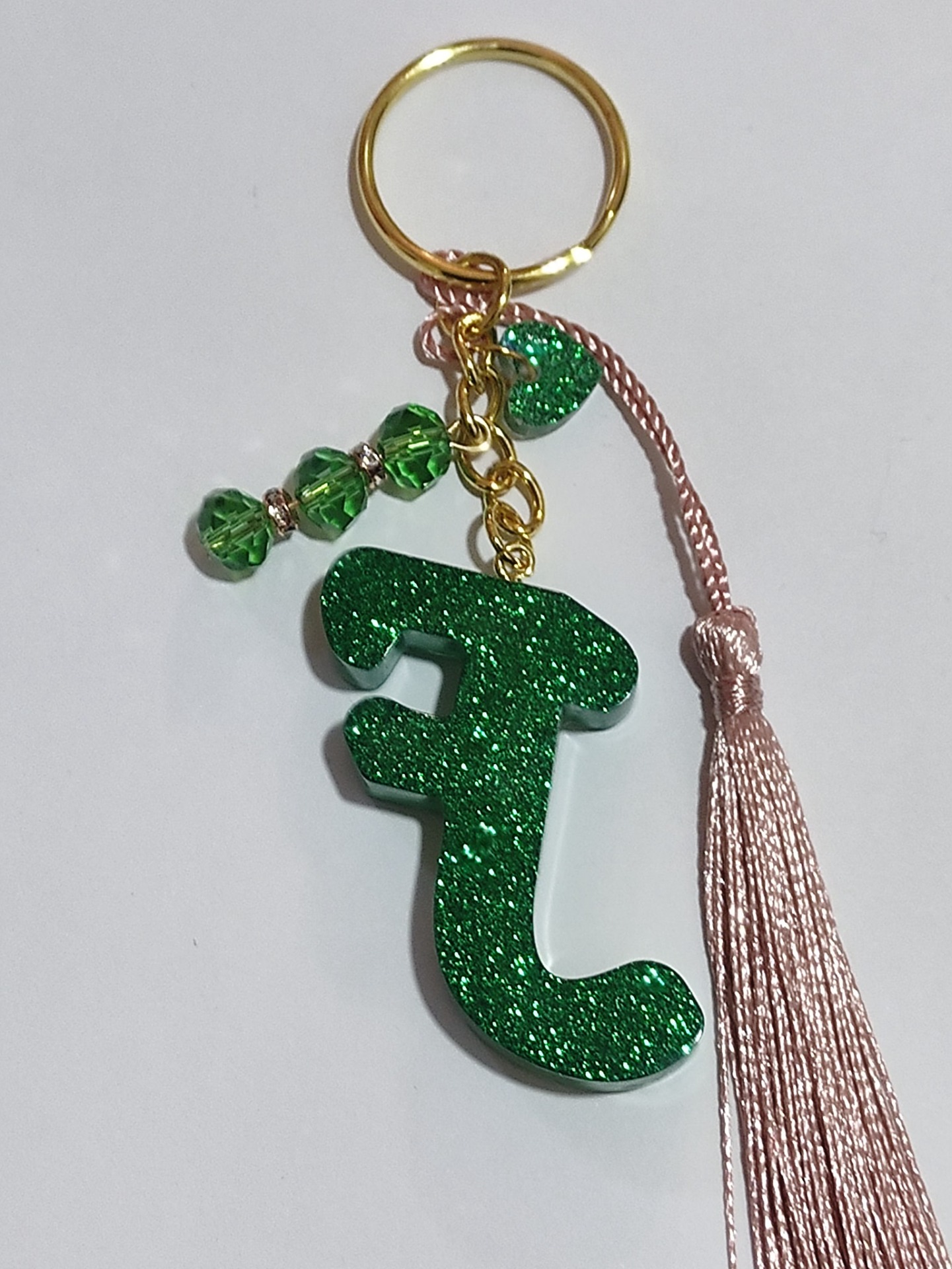 Gyantából öntött betű forma táskadísz , kulcstartó stb. Arany színű szerelékkel készítve.