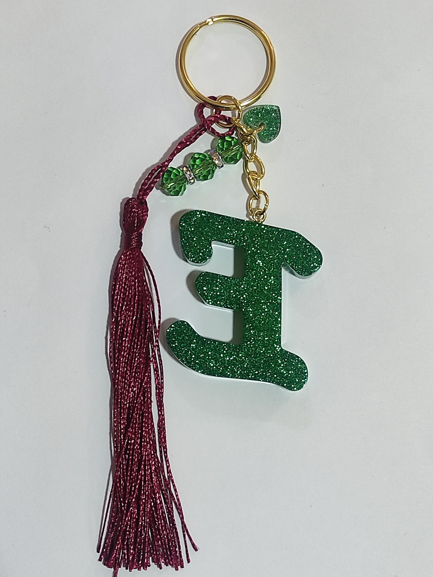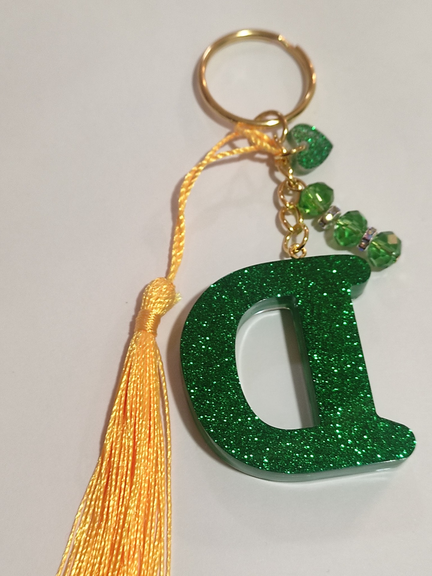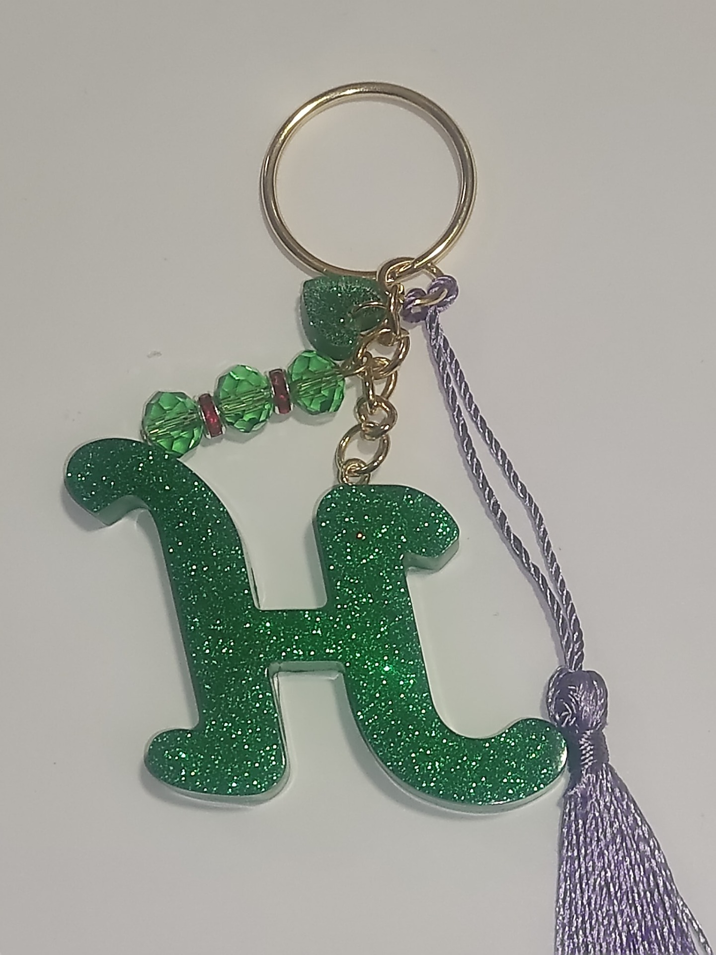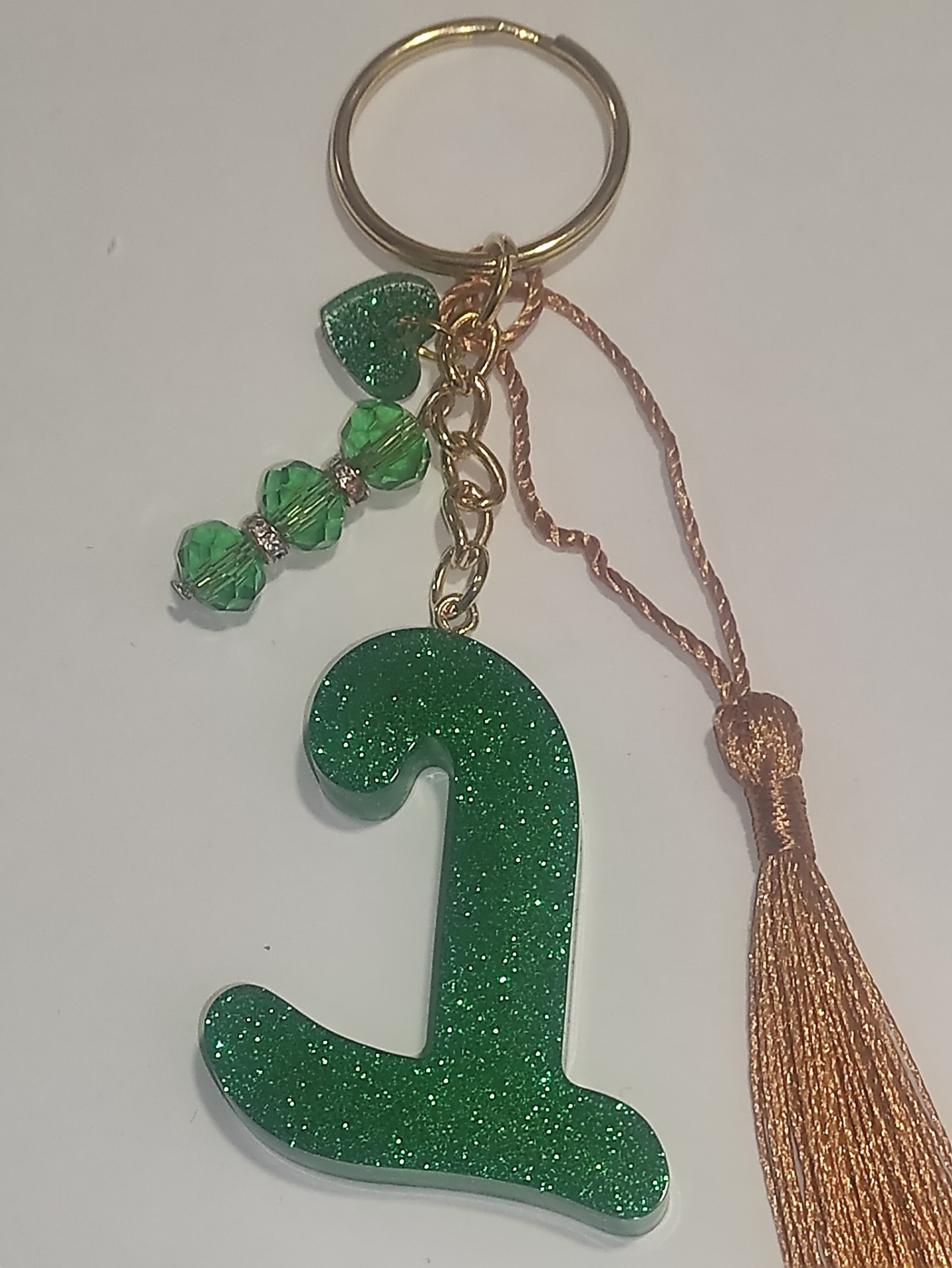 Gyantából öntött betű forma táskadísz , kulcstartó stb. Arany színű szerelékkel készítve.