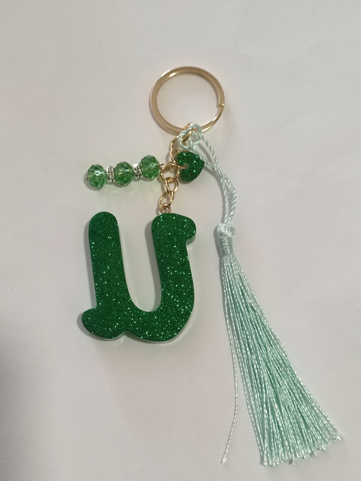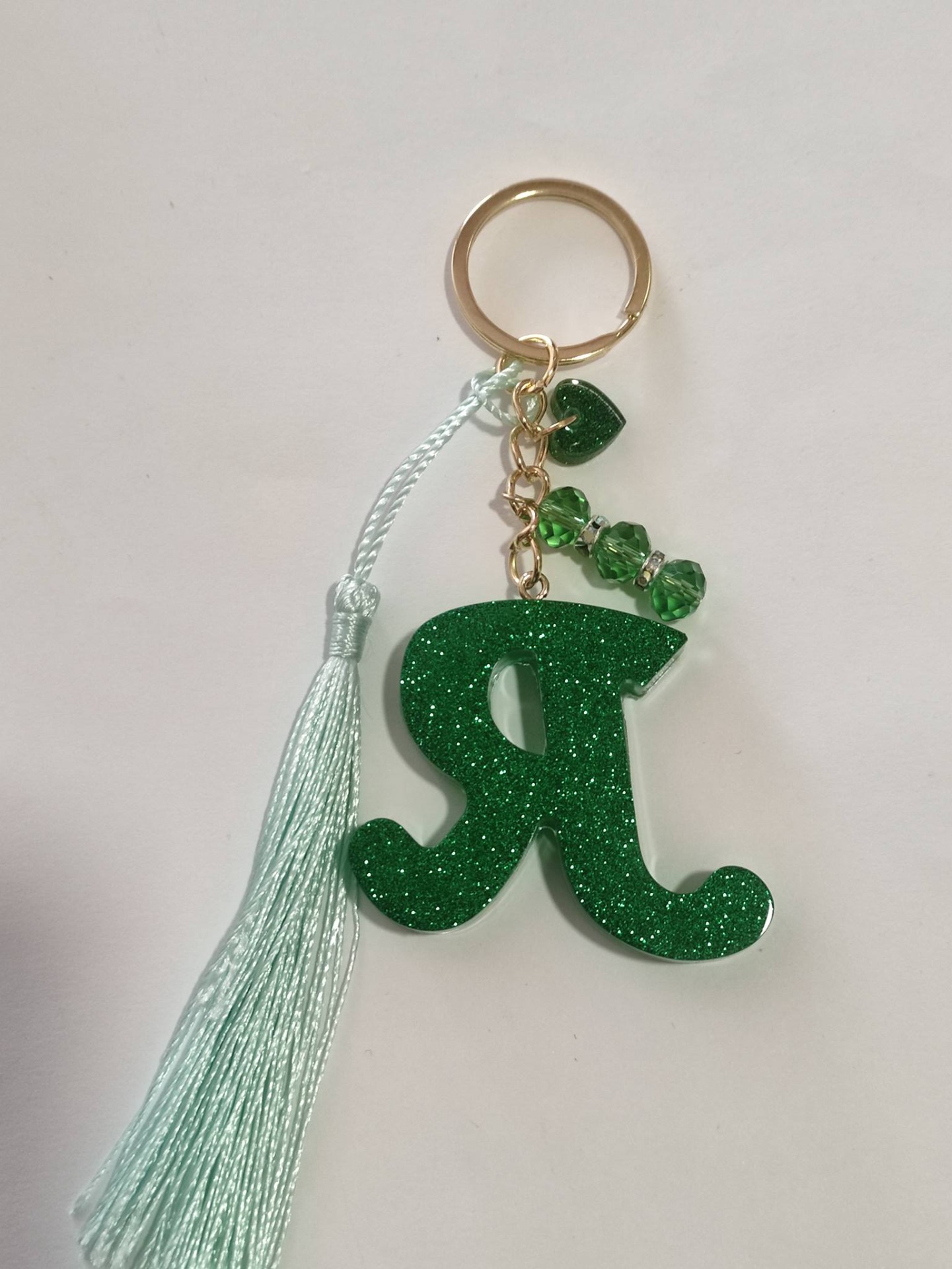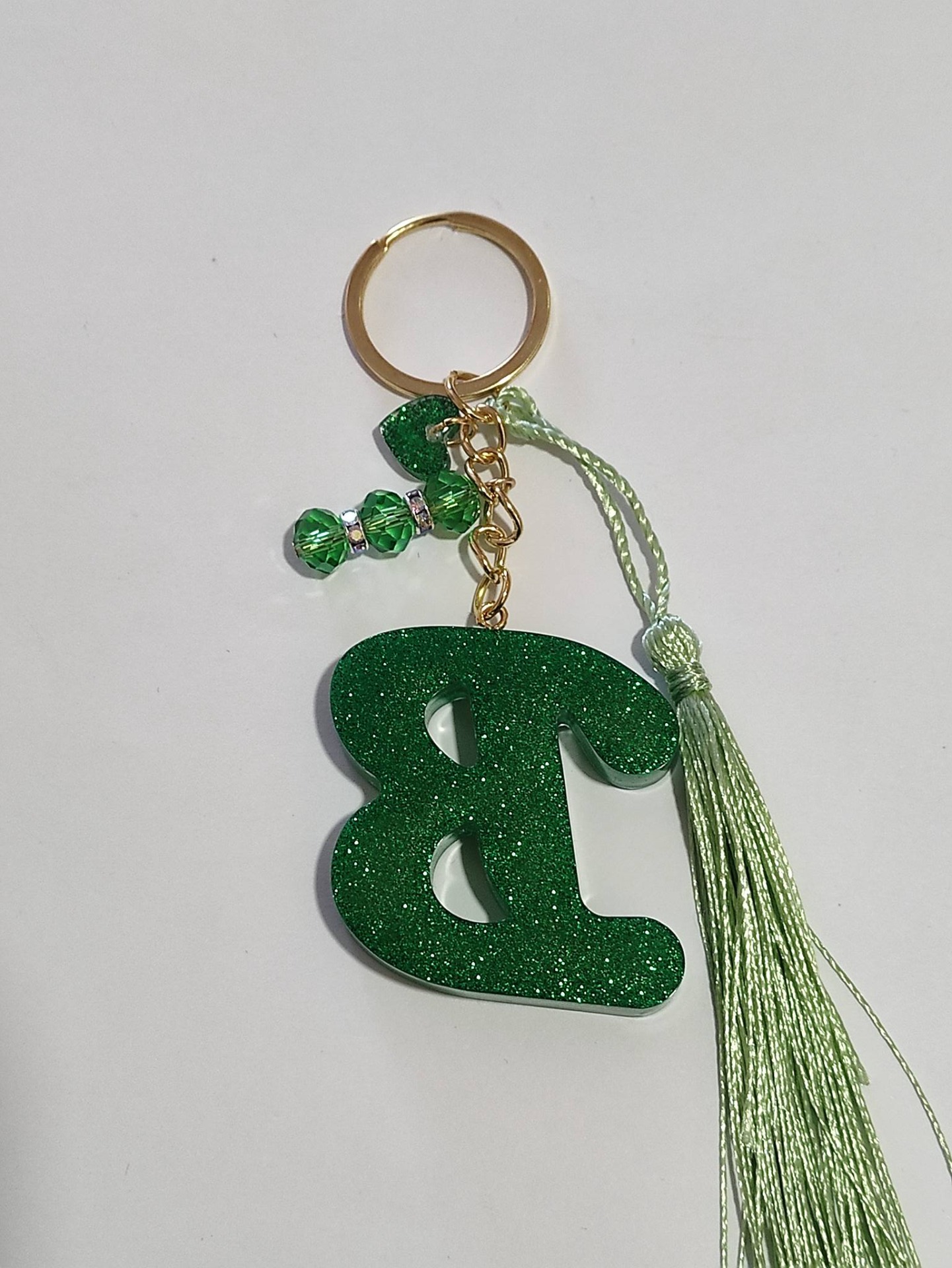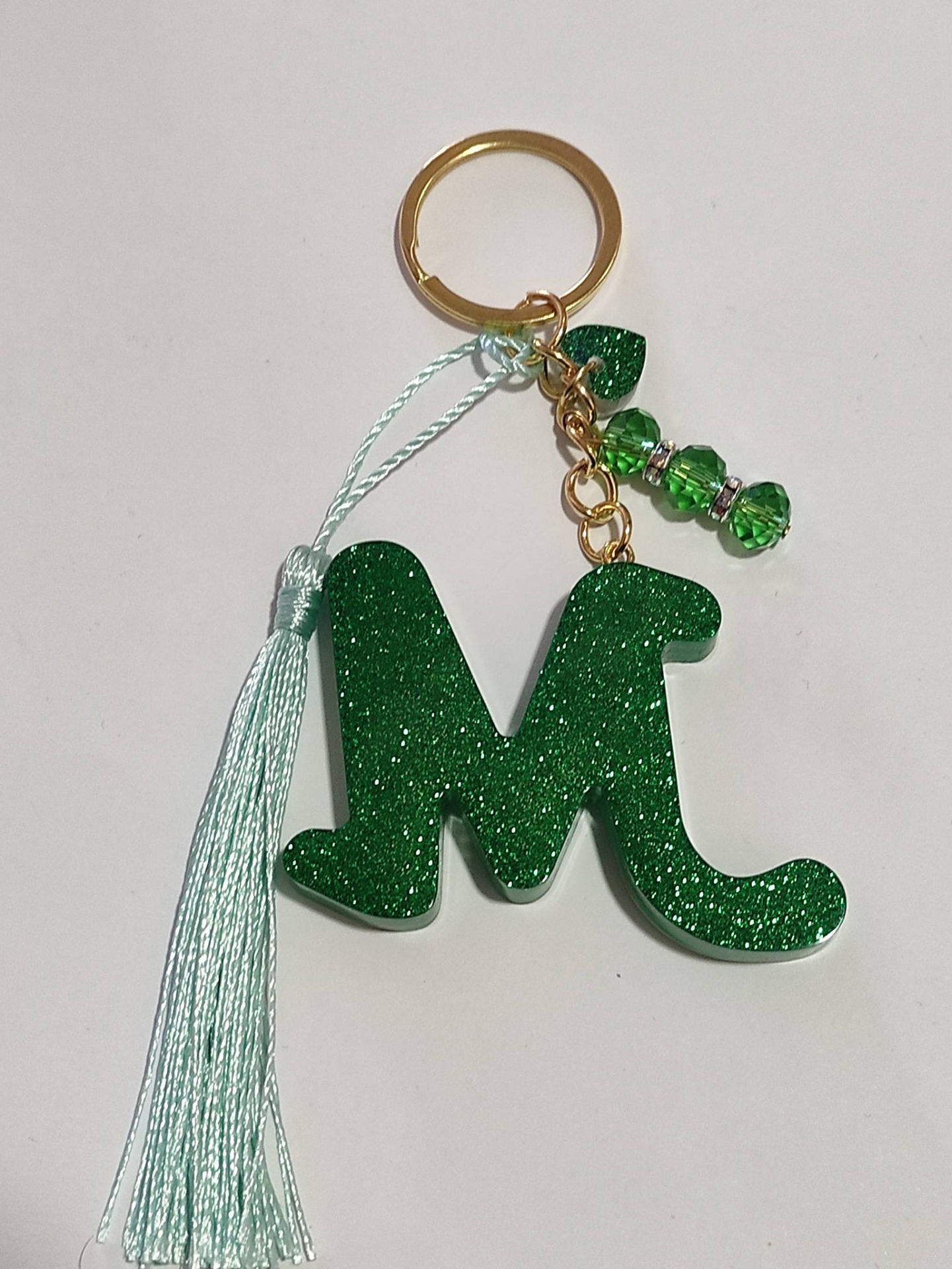 Gyantából öntött betű forma táskadísz , kulcstartó stb. Arany színű szerelékkel készítve.