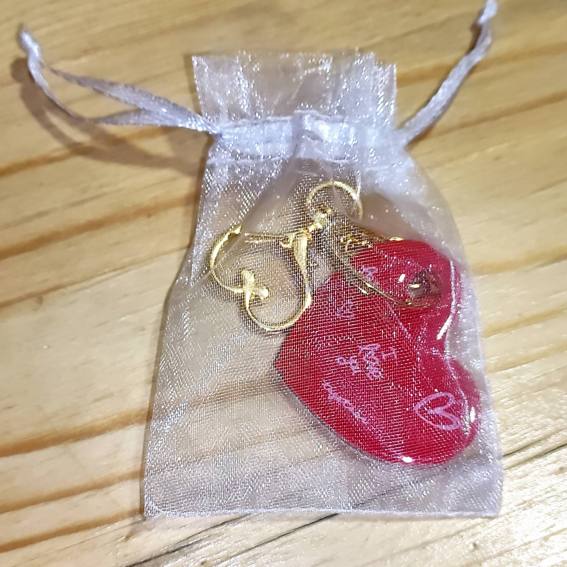 Anyaga: gyantából öntött nagy szív ( 4,5 x 4 cm) / szív alakú akasztó arany színű.