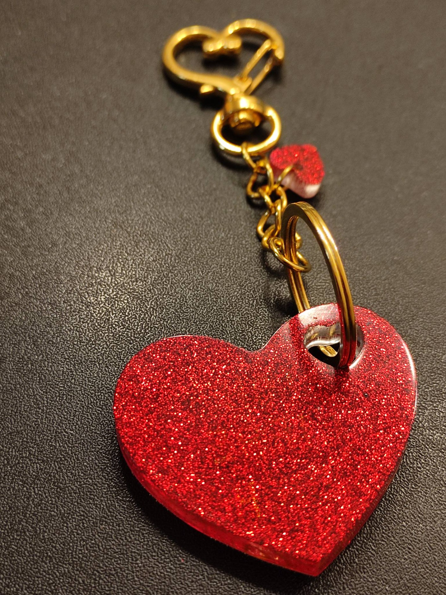 Anyaga: gyantából öntött nagy szív ( 4,5 x 4 cm) / kis szív (1 x 1 cm) / szív alakú akasztó arany színű